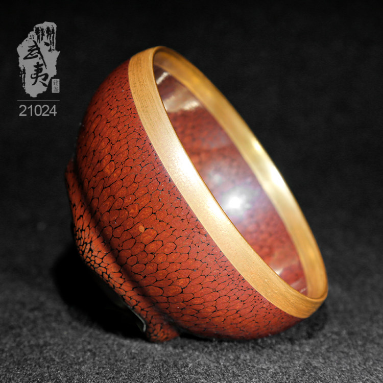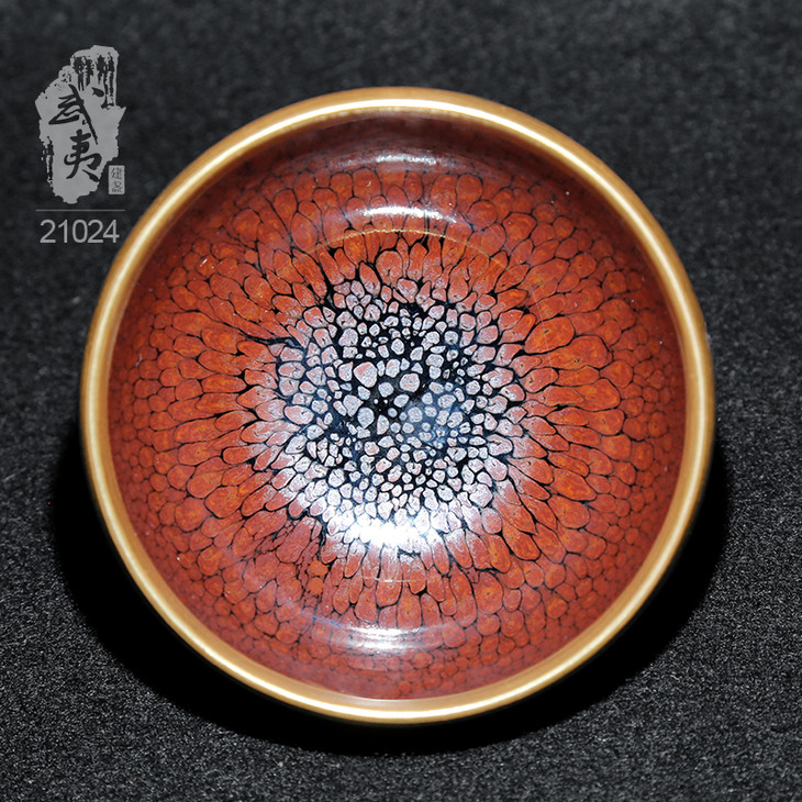 建盏大师陈其富,金扣柿红鹧鸪钵形盏