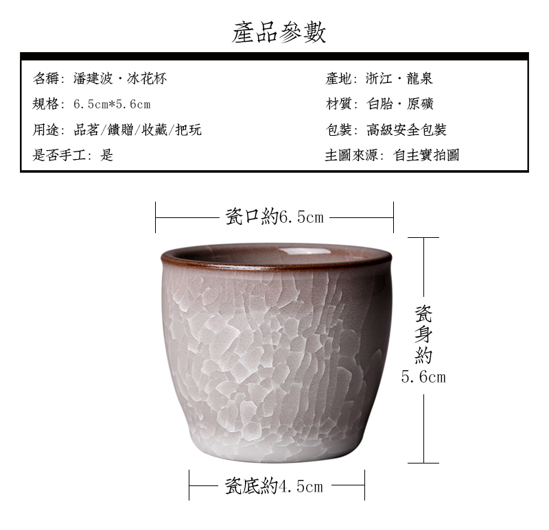 潘建波,高级工艺美术师,浙江省工艺美术大师,浙江省首届陶瓷艺术大师,毕业于景德镇陶瓷学院艺术设计专业,1974年1月生于青瓷世家,父母的熏陶和瓷土堆里的童年,令其走上了青瓷之路。1991招工到龙泉瓷器二厂设计室从事造型设计工作,1994年创办了自己的青瓷作坊——溢青轩,1995年师从中国陶瓷艺术大师陈爱明学习陶瓷造型设计。经过多年的学习、摸索、熟练地掌握了从原料配制到烧成的一整套技术。并逐步形成了自己独特的艺术风格,特别是哥窑作品造型古朴典雅、开片奇特、釉色温润如玉。近年来,其作品曾多次获奖并被收藏。