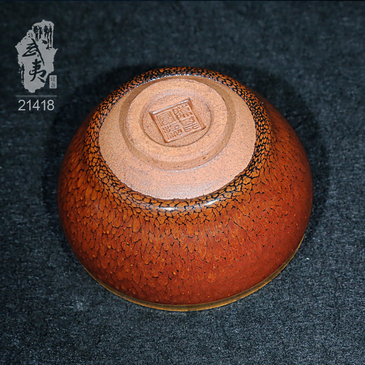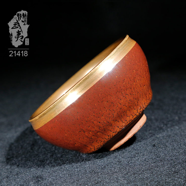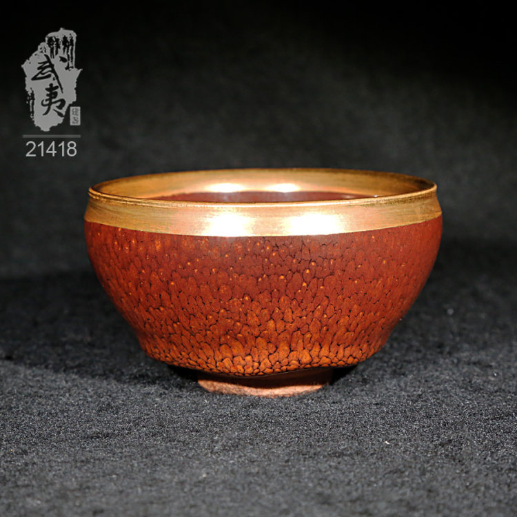 建盏大师陈其富,金扣柿红鹧鸪斑小茶盏
