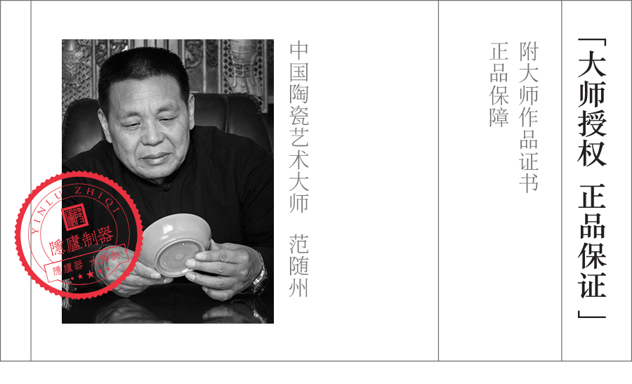 范随州大师从事汝瓷研究与实践三十余年,文化素养深厚,理论基础扎实,技艺娴熟。其艺术风格洒脱、跳跃、不拘一格,有汇天下良工精华,集天下名窑大成之襟怀,作品张弛有度,创意自然,极具大家风范。范随州大师共获得国家专利100多项,先后在国内外报刊发表论文10余篇,出版汝瓷文化专著6部。曾应邀到日本、韩国等多个国家和地区进行文化交流和学术研讨。作品多次荣获全国及省级工艺美术及陶瓷作品大赛金、银、铜奖,多次被确定为国家和省级对外交往高端礼品,多次被国际政商界名人和英国珍宝博物馆等数十家机构收藏。2013年,作品《水仙盆》收录入全日制中学美术课本,首次让汝瓷作品进入教科书。2018年4月,与王振芳大师共同其设计的餐具、茶具等作品被中国外交部(河南)全球推介活动指定为专用餐具、茶具,首次让汝瓷走上国宴,向全球展现汝瓷惊世之美。