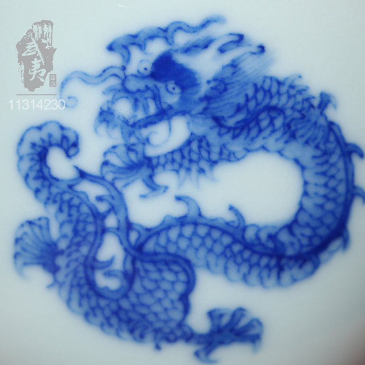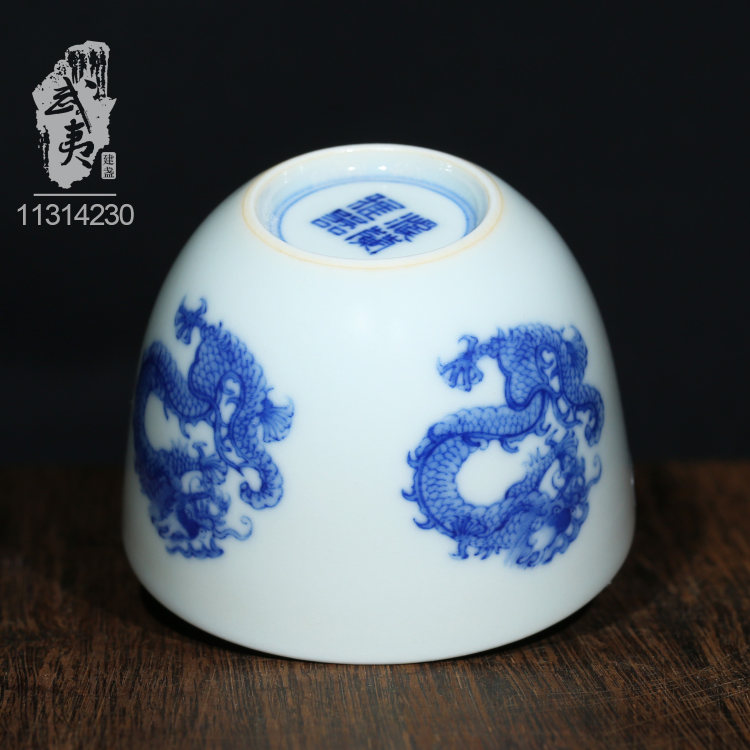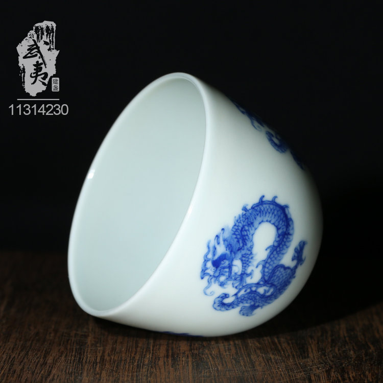 器型:柴窑青花团龙圆融杯