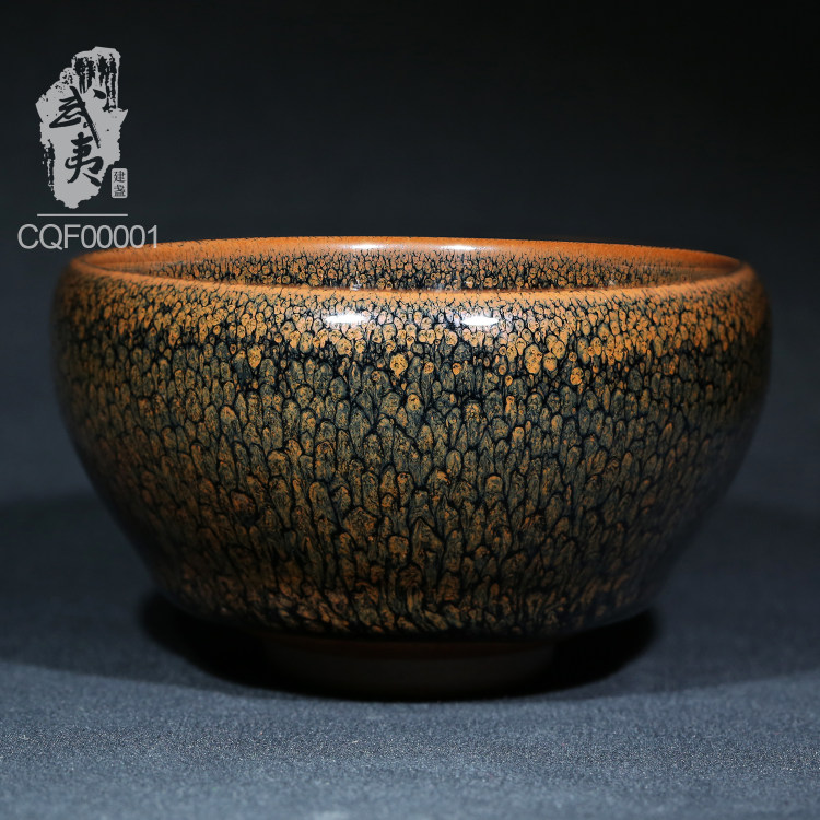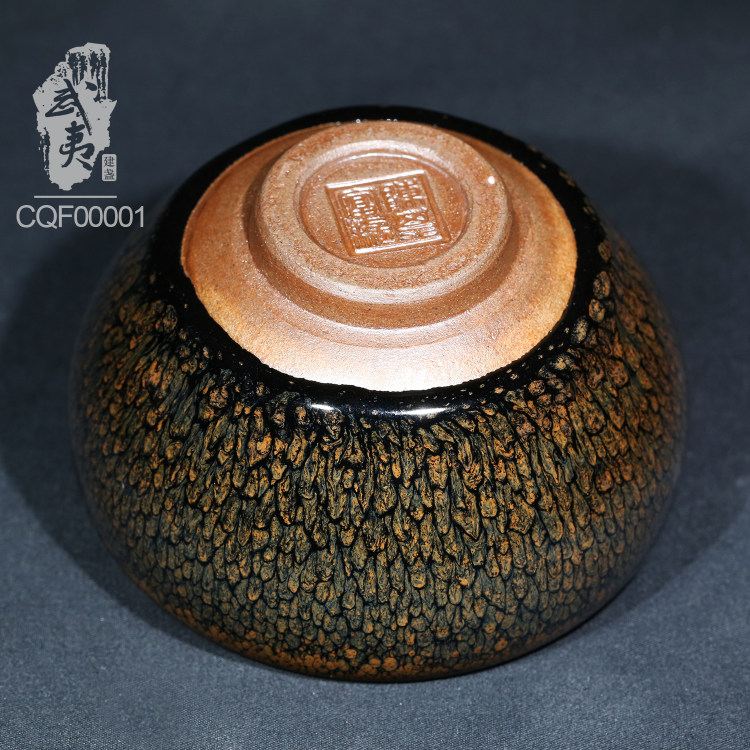 建盏陈其富,敛口褐色鹧鸪斑茶盏
