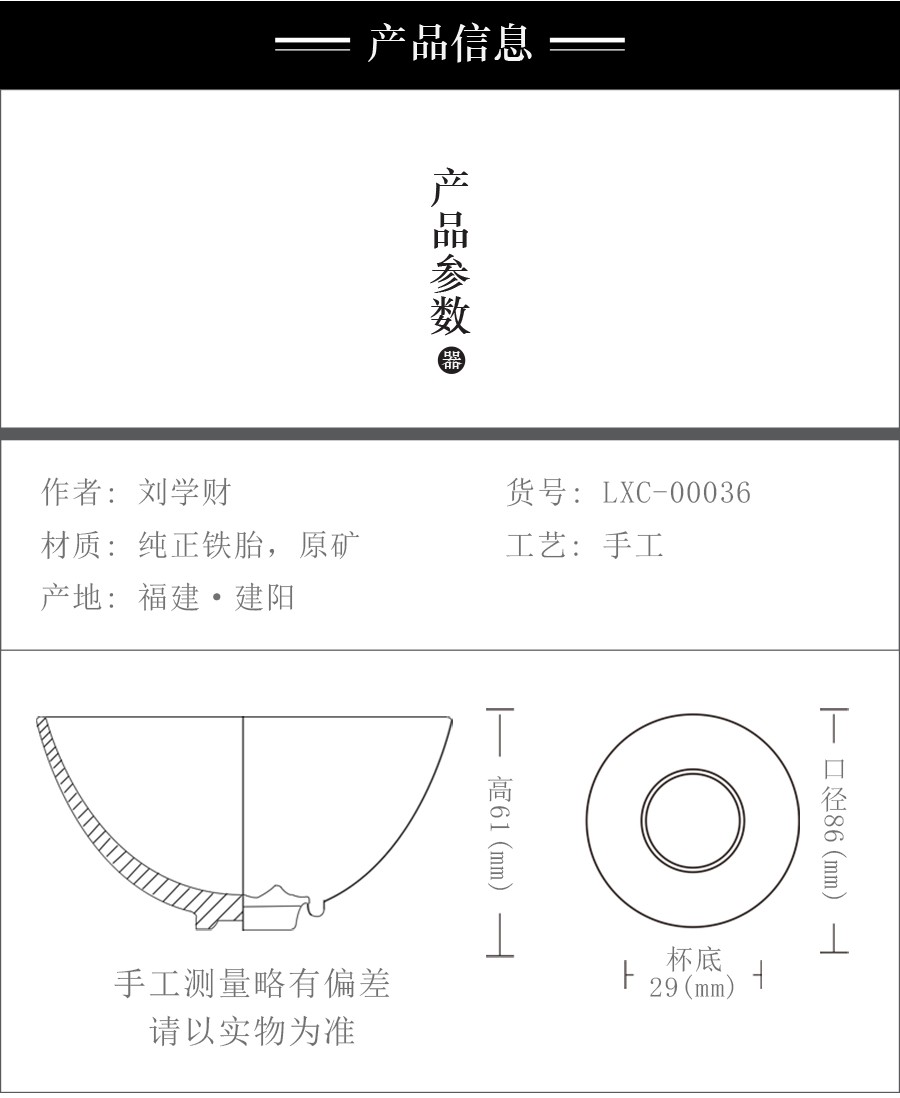 三、由于手工制品以及烧制过程中产生的窑变带来的特殊性,同款作品也有可能会在外观、色泽、尺寸和重量存在轻微差异,请以实际收到的作品为准;
