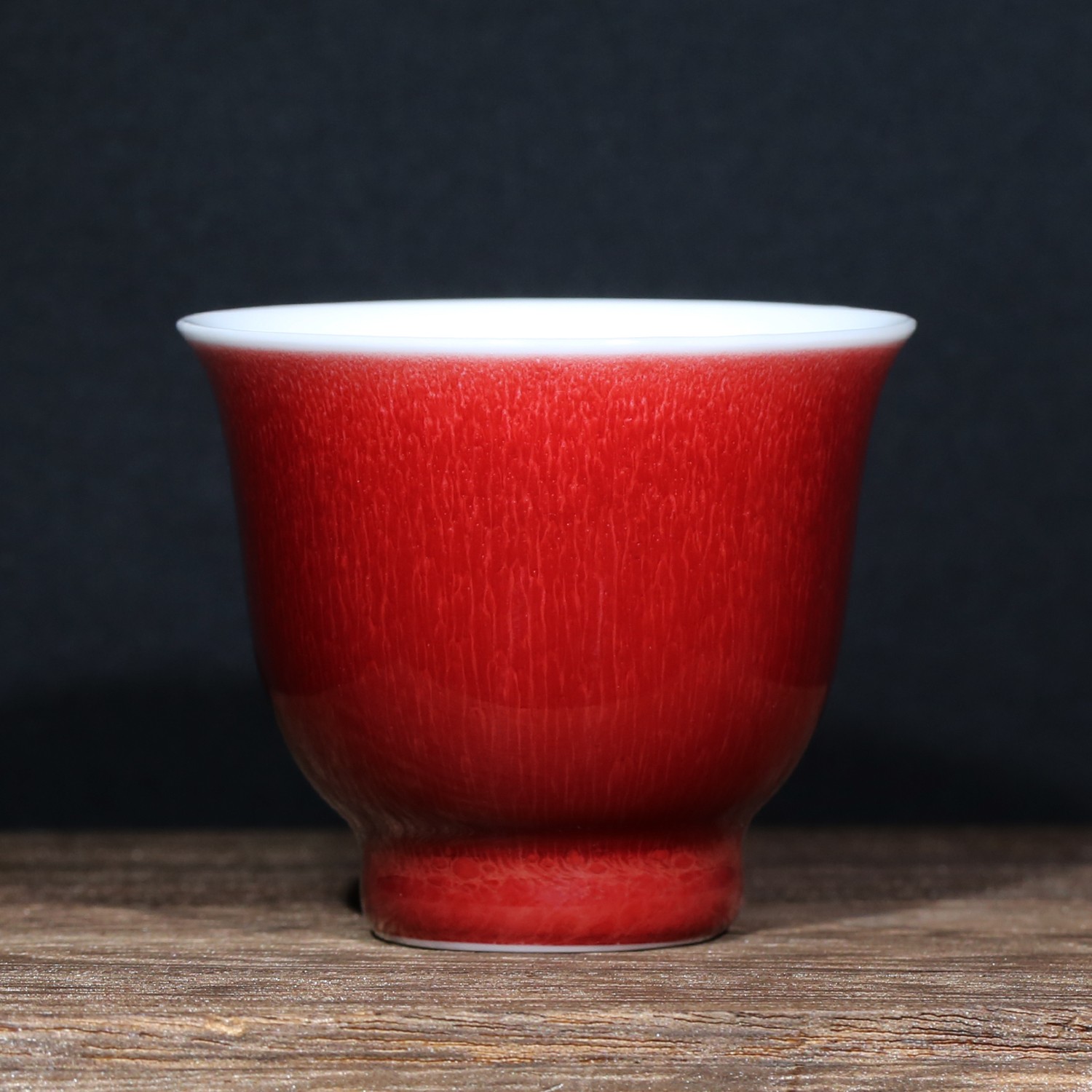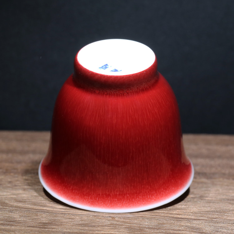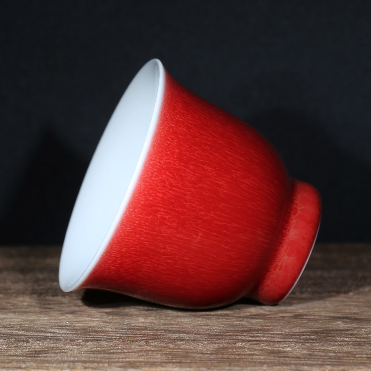 “脱口垂釉郎不流,牛毛开片非宣红”这是行业里对贡品级郎红特征的总结,简而言之,便是器物口沿呈一环露白,釉料垂流止于底而不过足,凝聚出鸡翅木纹;釉色层次分明,纹如牛毛,釉面带有冰裂纹,整器之红渐而万变,艳而不俗。贡品级郎红的烧制讲究天时地利人和,实属不易,故诸多逐利商人以化学品替代原矿釉料,致品相参差不齐。胡旻恪守本心,严于律己,不惜废万品,用实际行动守护传承下来的郎红技艺。