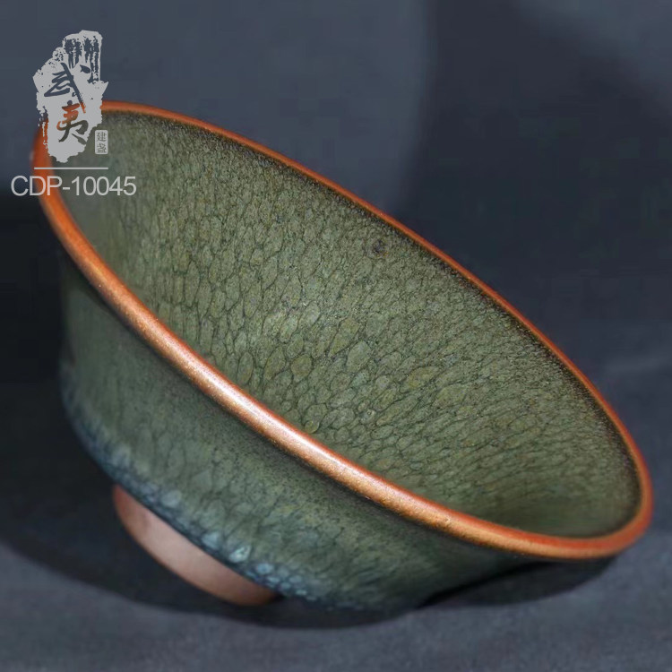 建盏陈大鹏,撇口绿釉盏