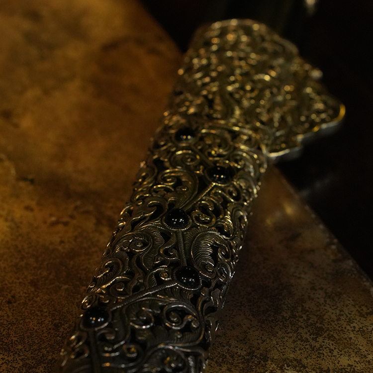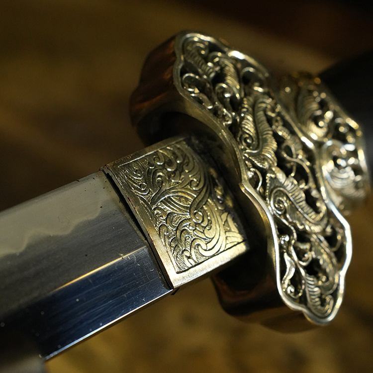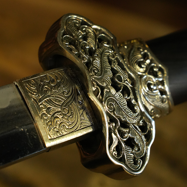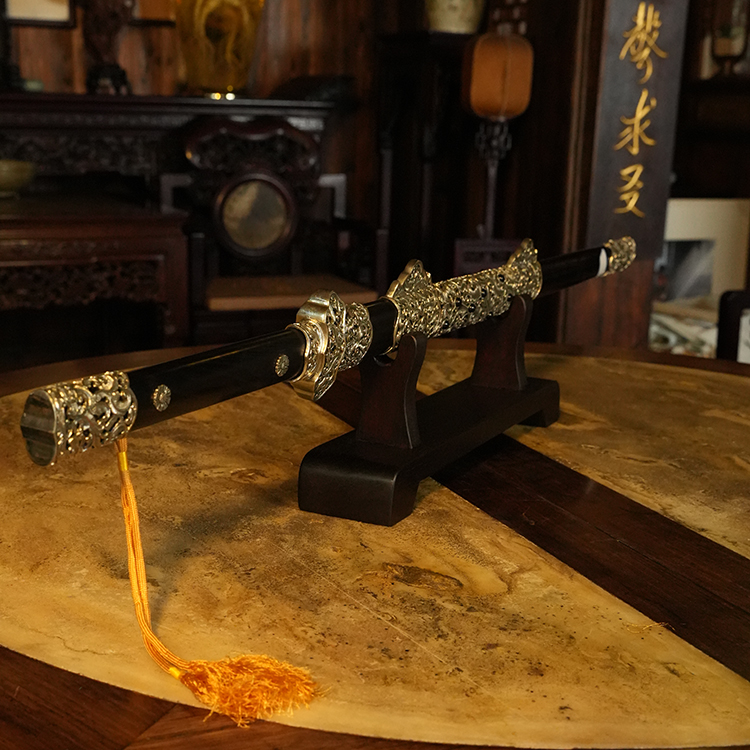 材质:古法锻制玉刚剑身,白铜手工精雕刻外装,上等黑檀木木鞘
