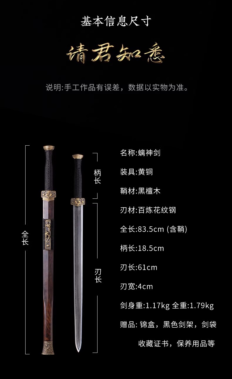 规格:全长83.5cm,刃长61cm,剑身重1.17kg,全重1.79kg