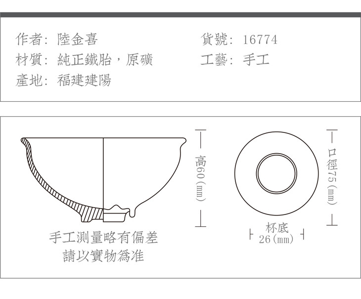 三、由于手工制品以及烧制过程中产生的窑变带来的特殊性,同款作品也有可能会在外观、色泽、尺寸和重量存在轻微差异,请以实际收到的作品为准;